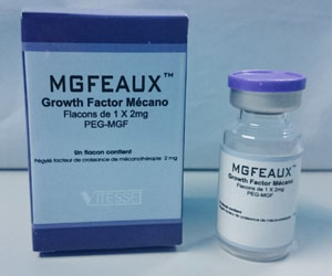 PEG-MGF est un variant d'épissage du gène IGF qui augmente le nombre de cellules souches dans le muscle et permet de fibres musculaires de fusionner et de mûrir. C'est un processus nécessaire à la croissance des tissus musculaires adultes. Natural MGF est faite localement et ne se déplace pas dans la circulation sanguine. Synthétique MGF est à base d'eau et lorsqu'il est administré par voie intramusculaire, se déplace dans la circulation sanguine. MGF n'est stable dans le sang pendant quelques minutes.
